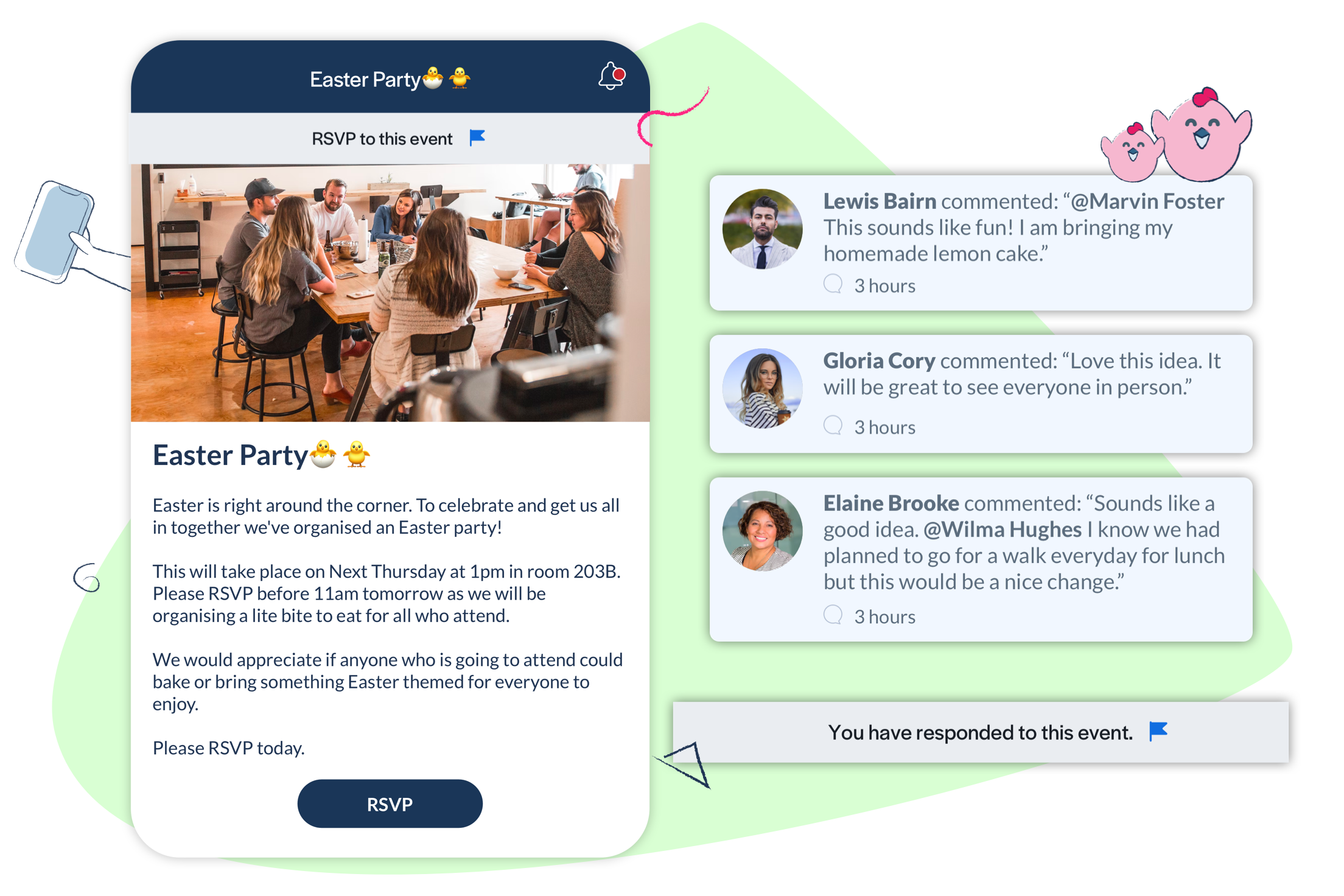 You may be able to host an in-person Easter party. Your employee app will still be a great tool to promote and organise this event, manage attendance and share photos of the fun day.