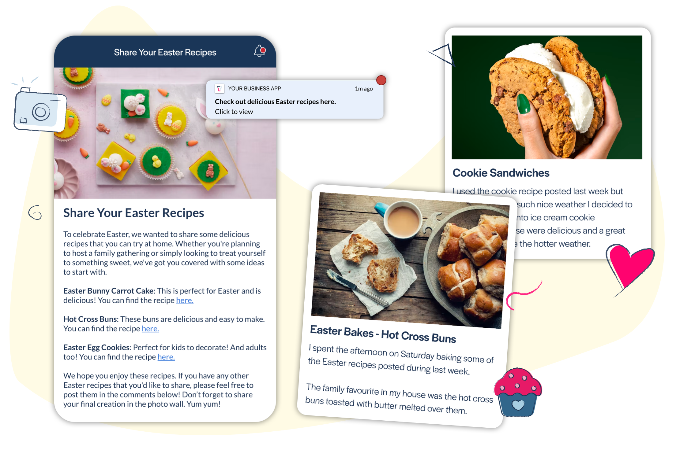 Who doesn’t love a foodie photo wall? Get the food conversations going by adding a dedicated space within your app where employees can share their favourite Easter recipes and add photos to your photo wall of their dishes on the app. Your teams can share their recipe ideas with each other to become more creative in the kitchen.